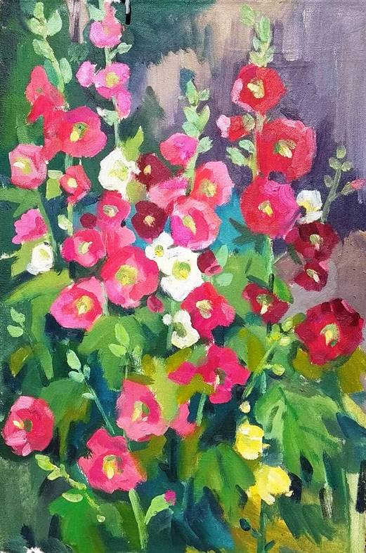 Любые цветы, особенно многоцветные начинают писать с выбора формата, у нас вытянутый по вертикали , так как мальвы … >>